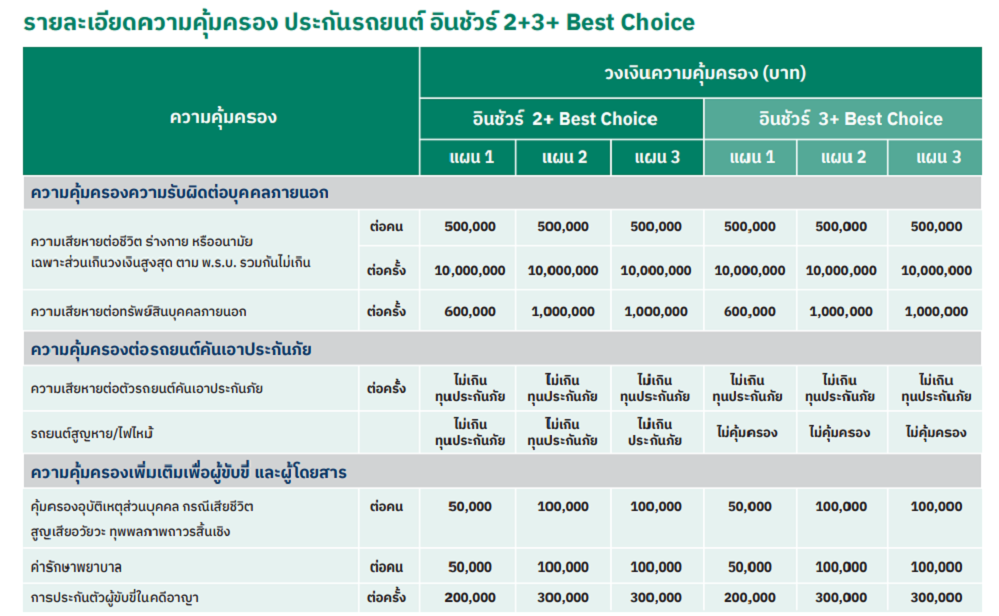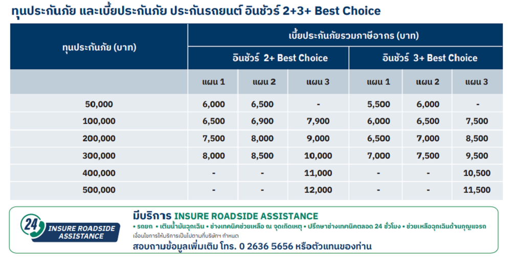 ประกันรถยนต์ อินชัวร์ ชั้น 2+ 3+ Best Choice