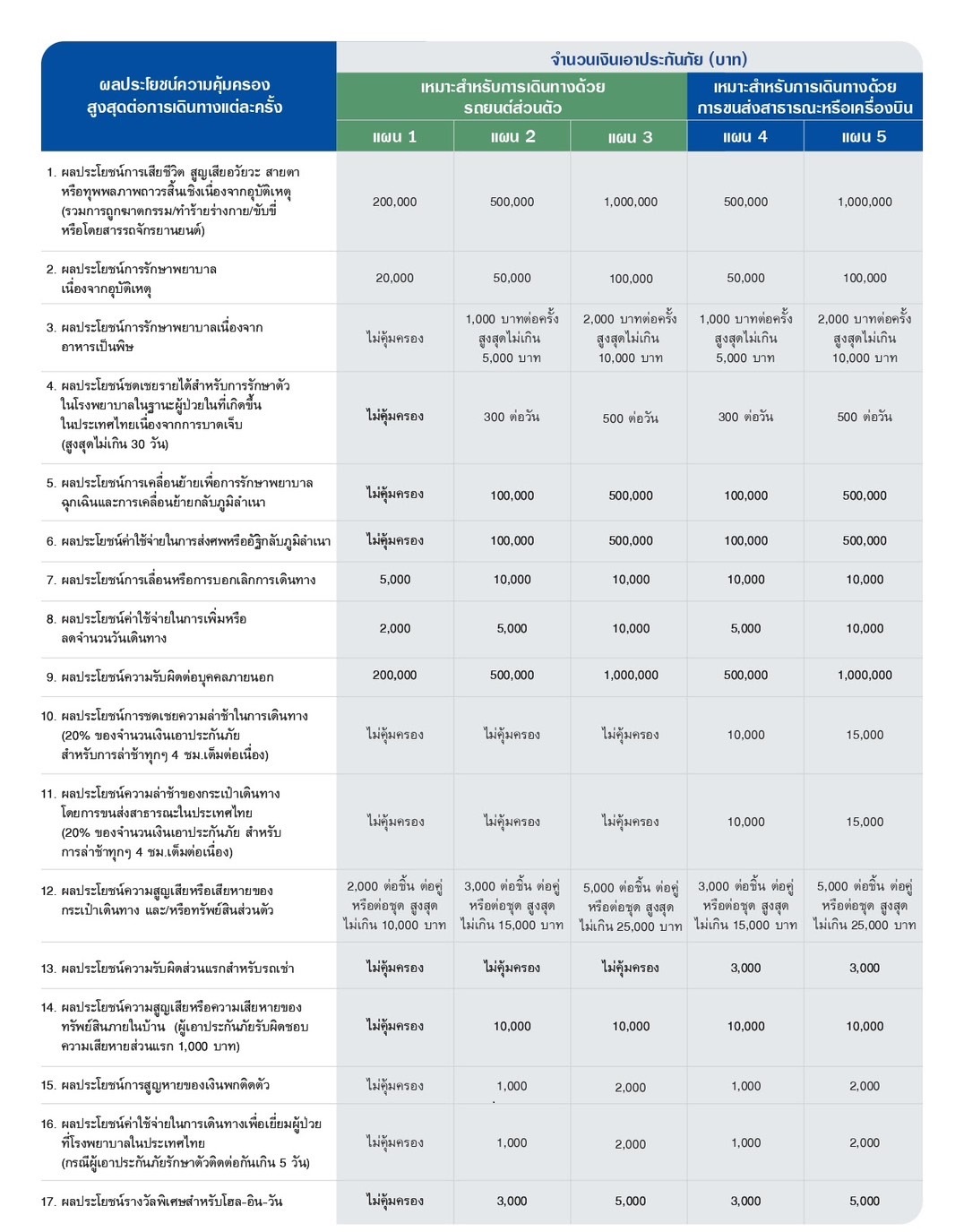 รายละเอียดความคุ้มครองประกันภัยเดินทางภายในประเทศ V Travel