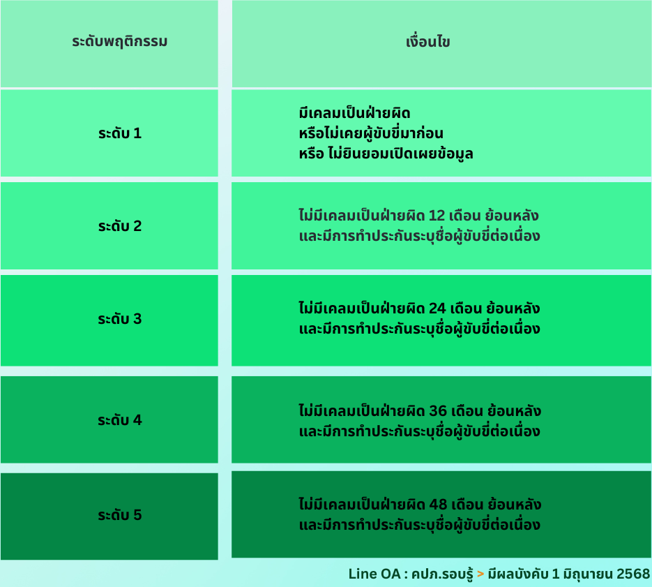 - ผู้ขับที่มีประวัติดีอาจได้เบี้ยถูกกว่าผู้ขับที่มีประวัติเสี่ยง