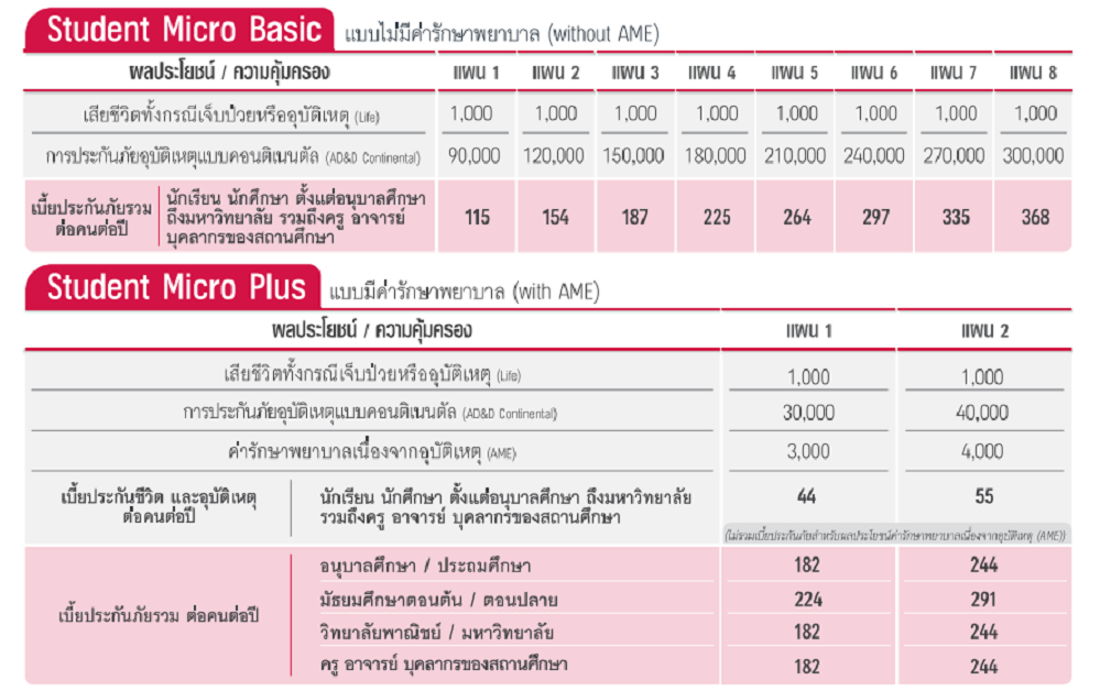 | ดาวน์โหลดโบรชัวร์แผนประกันอุบัติเหตุกลุ่ม สำหรับนักเรียน นักศึกษา AIA Student Micro |